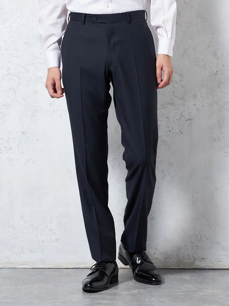 【ウール100%】スリーピーススーツ 2つボタン 背抜き ヘリンボン S&M BLUE LABEL 通年(ネイビー)