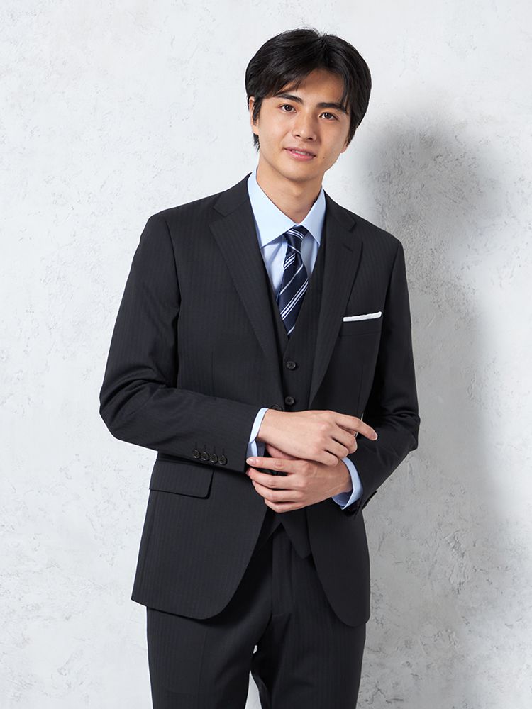 【即納】【WEB限定】スーツ2つボタンブラックシャドウストライプ上下ウォッシャブル3シーズン対応