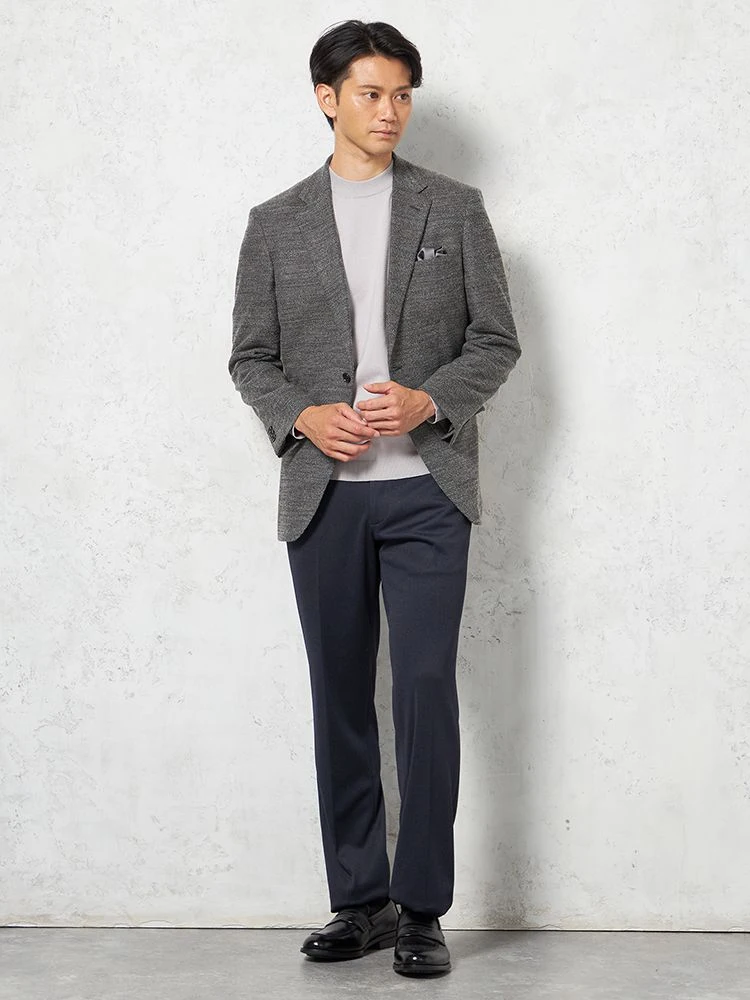 凹凸のある素材を採用したノータックのスラックス。