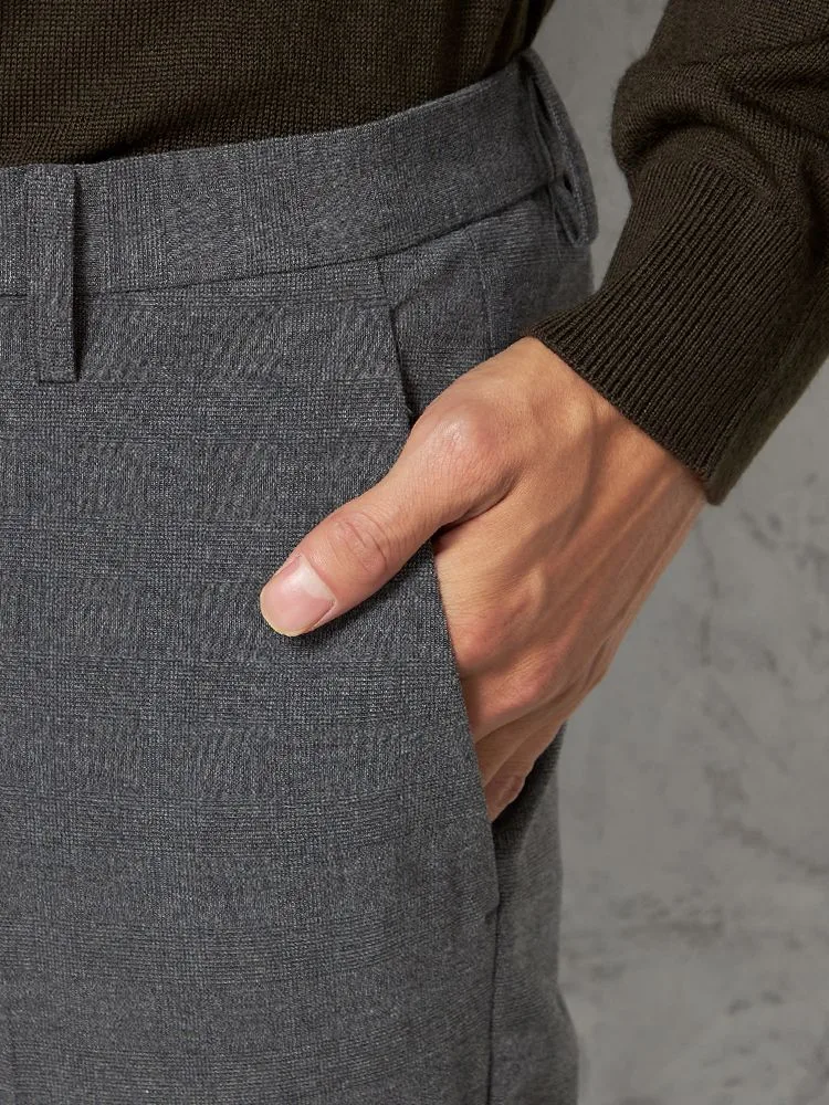 【ウォッシャブル】パンツ デレガント素材 ストレッチ グレンチェック TOKYO RUN 秋冬(M.グレー)