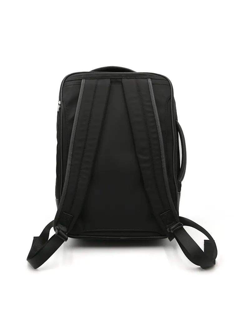 【KATHARINE E HAMNETT-キャサリン・イー・ハムネット-】3WAYバック ナイロン×サフィアーノ リュック/ブリーフ(タテ・ヨコ) 無地 通年(ブラック)