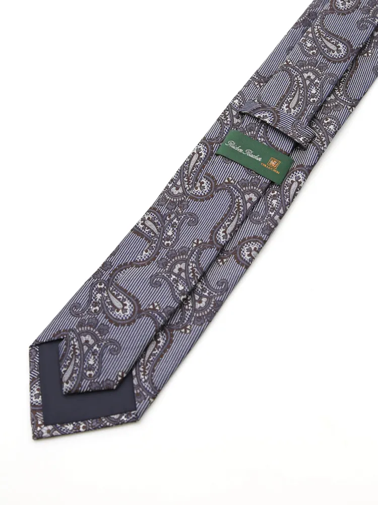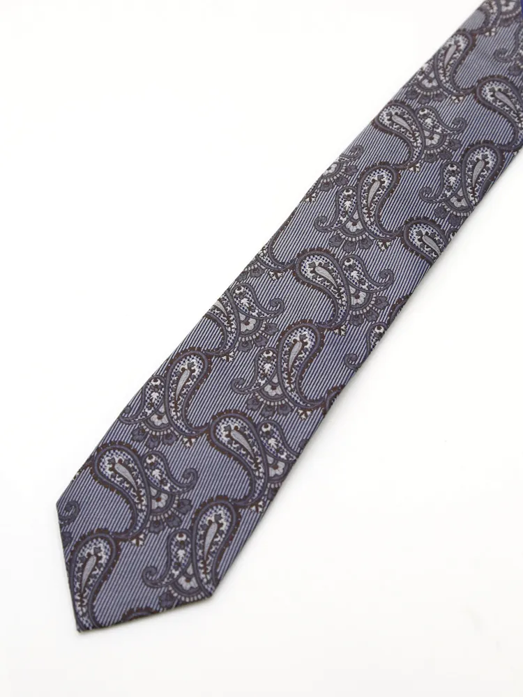 【シルク100%】ネクタイ レギュラー ペイズリー リッケンバッカー(C.グレー)