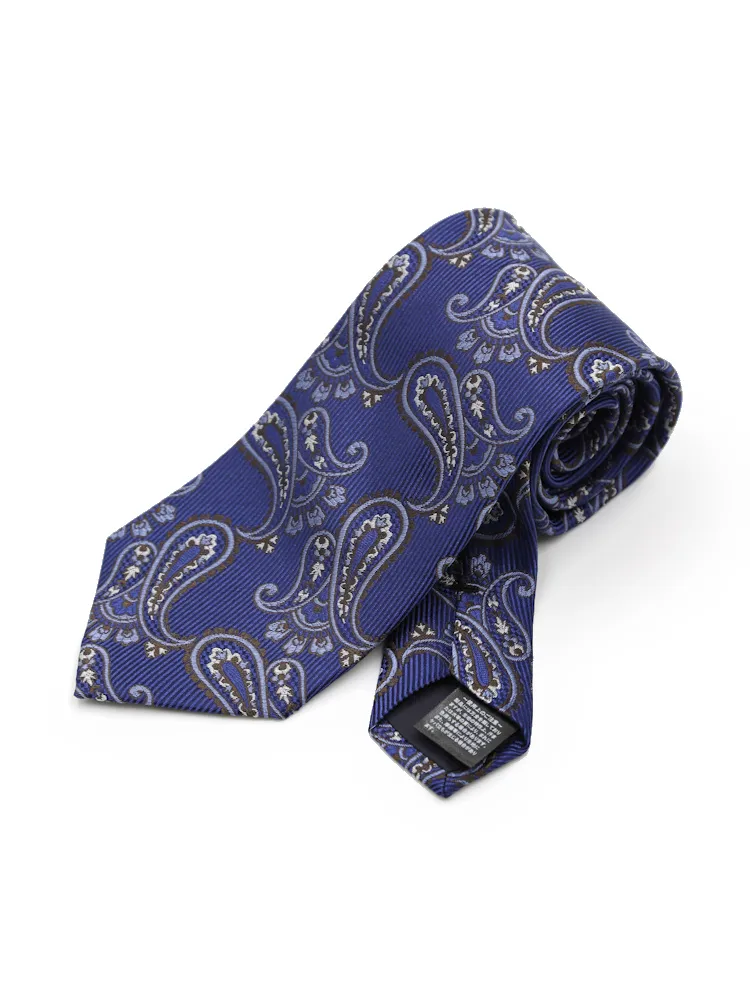 【シルク100%】ネクタイレギュラープリントタイペイズリーS&MBLUELABEL