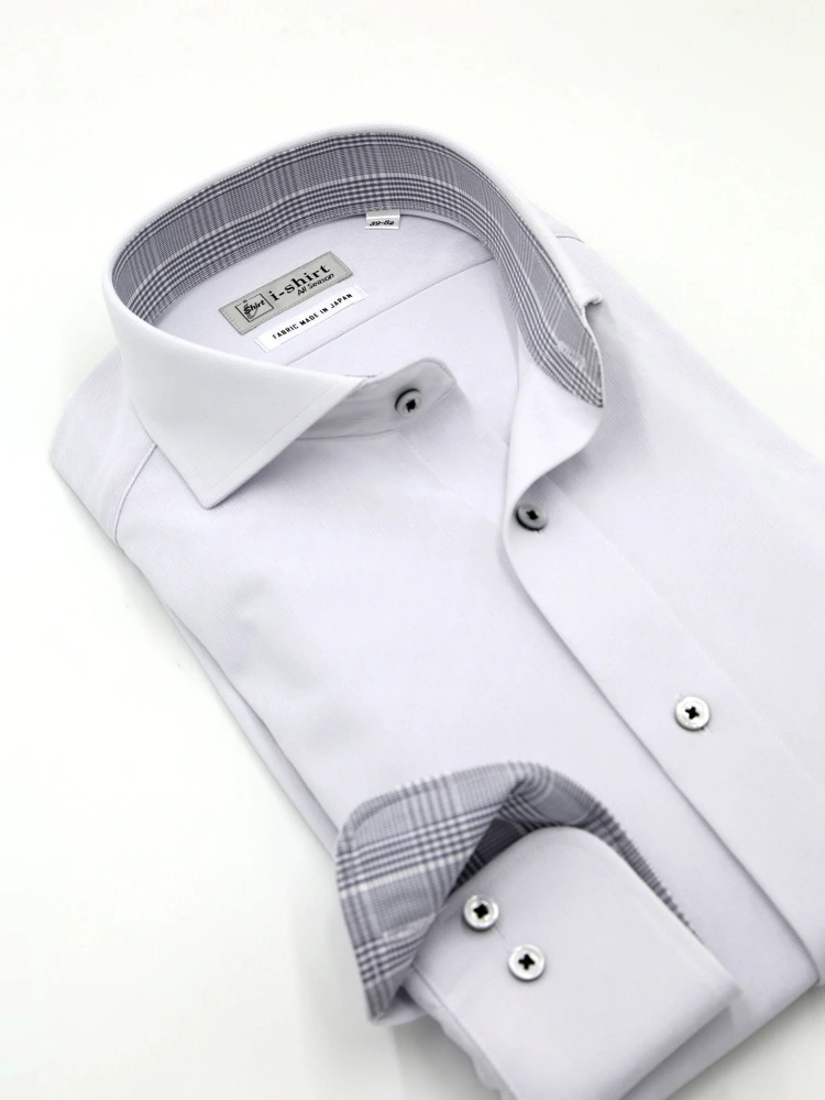 【完全ノーアイロン】長袖 アイシャツ カッタウェイ ストレッチ 防汚加工 織柄無地 ワイシャツ i-shirt 通年(ホワイト)