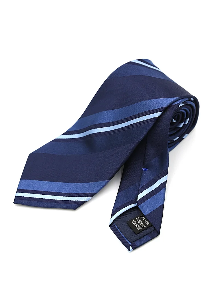 【シルク混】ネクタイレギュラーリクルートタイネイビーストライプnero通年