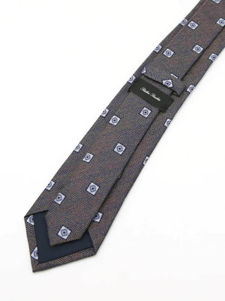 【シルク混】ネクタイ シルクリネン 小紋 リッケンバッカー 春夏(ブラウン)