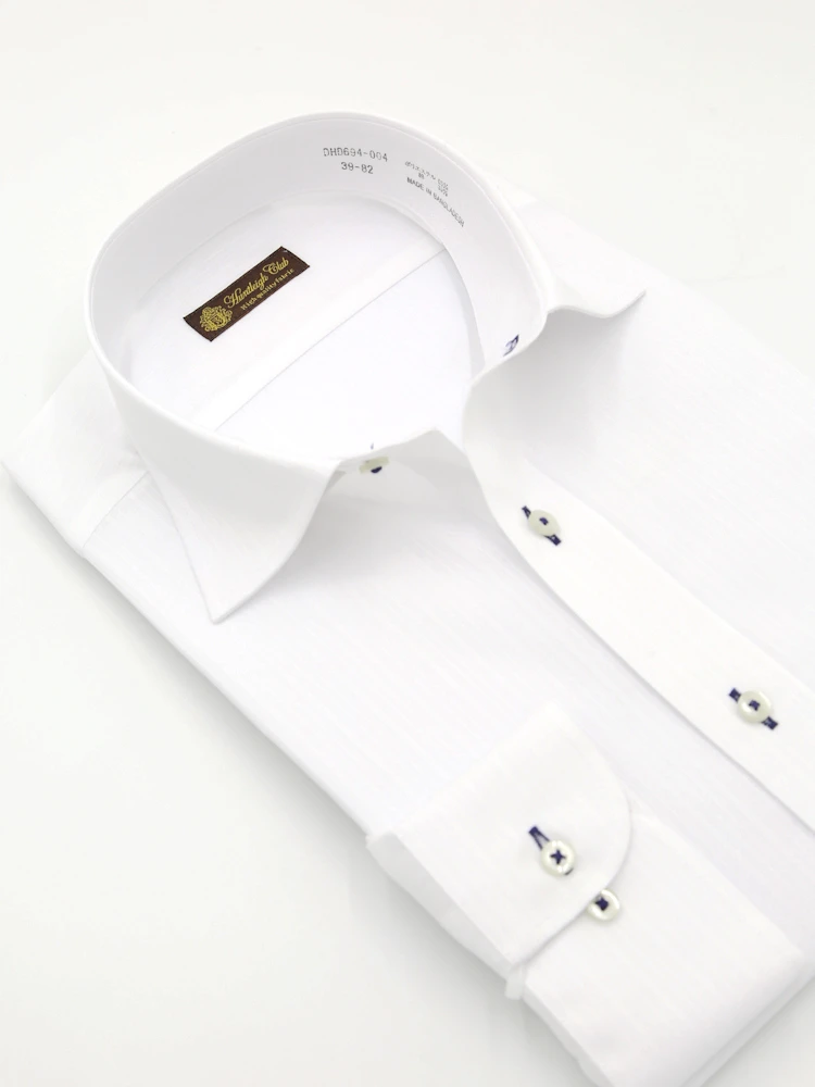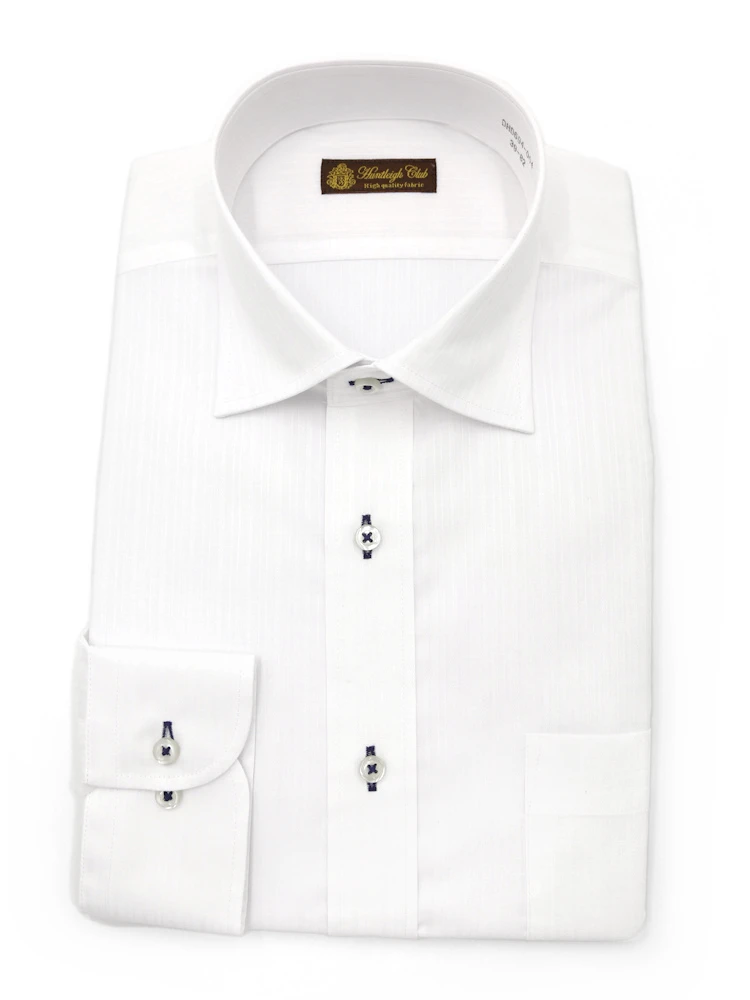 【形態安定】長袖 ワイシャツ セミワイド 白ドビー ハントレークラブ 通年(ホワイト)