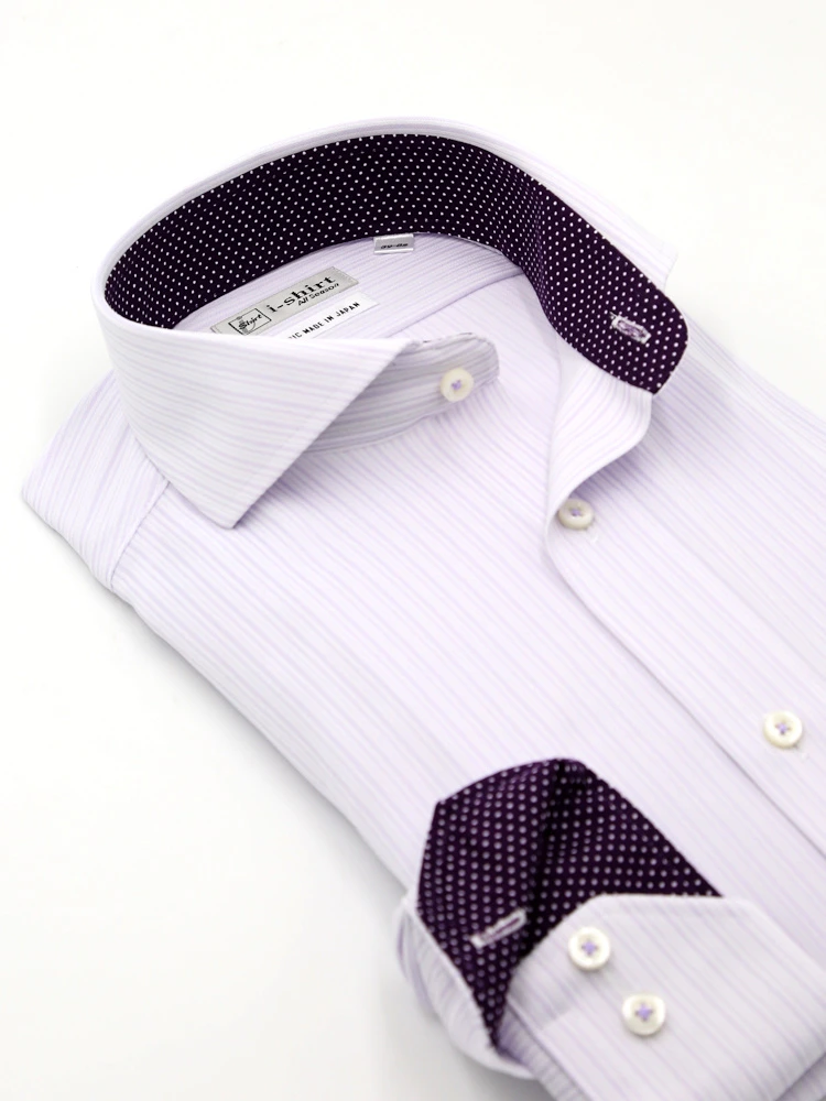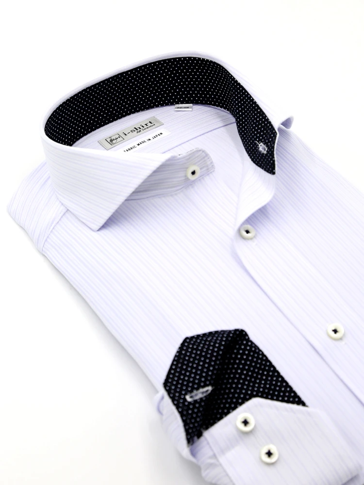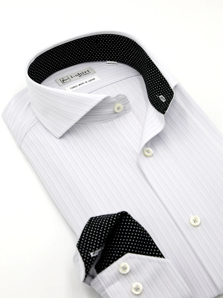 【完全ノーアイロン】長袖アイシャツセミワイドストライプストレッチ吸汗速乾ワイシャツi-shirt通年