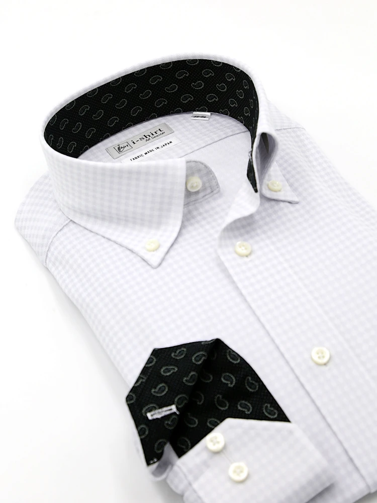 【完全ノーアイロン】長袖アイシャツボタンダウン織柄無地市松柄ストレッチ吸汗速乾ワイシャツi-shirt通年