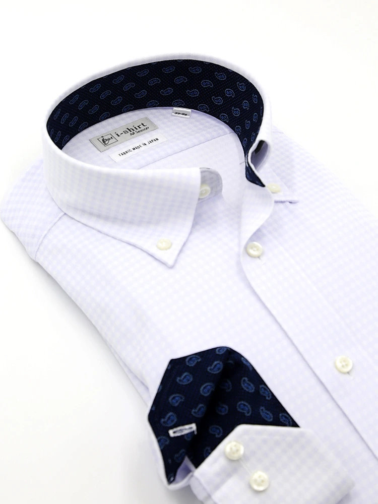 【即納】WEB限定【完全ノーアイロン】長袖アイシャツボタンダウンストレッチロンビック柄i-shirt通年