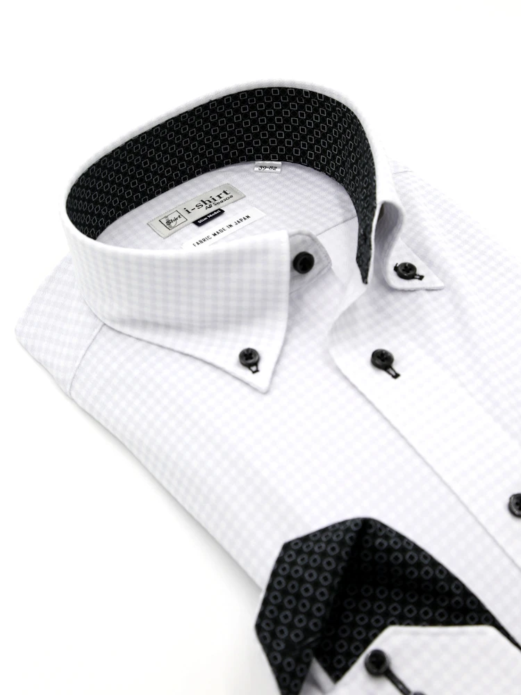 【即納】WEB限定【完全ノーアイロン】長袖アイシャツボタンダウンストレッチロンビック柄i-shirt通年