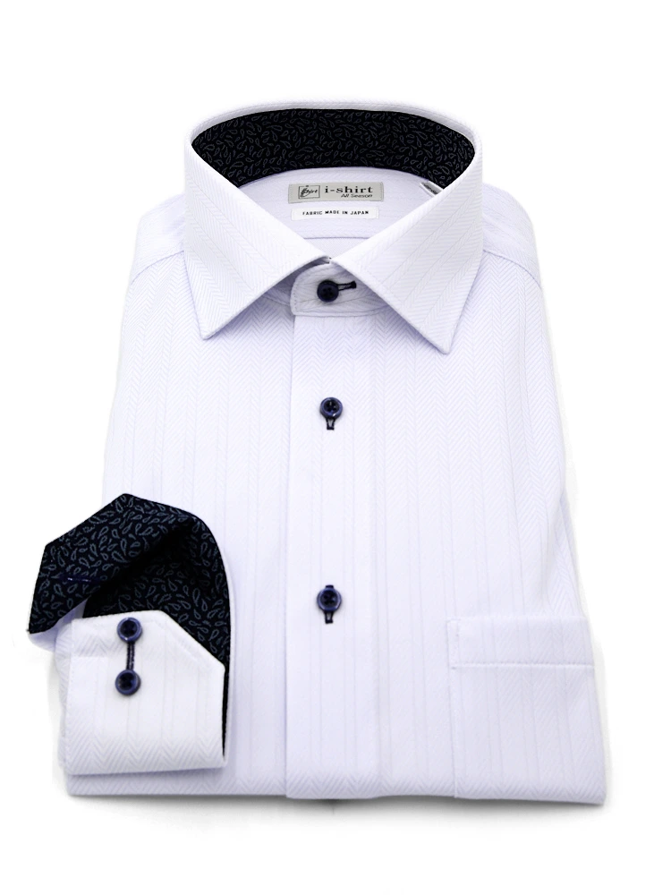【完全ノーアイロン】長袖 アイシャツ セミワイド ストレッチ 吸汗速乾 ヘリンボン ワイシャツ i-shirt 通年(サックス)