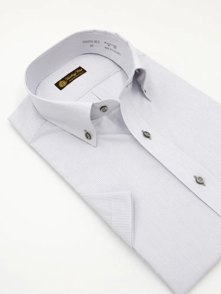 【形態安定】半袖 ワイシャツ ボタンダウン ストライプ ハントレークラブ 春夏(L.グレー)