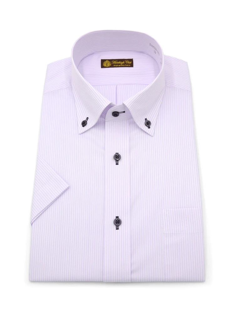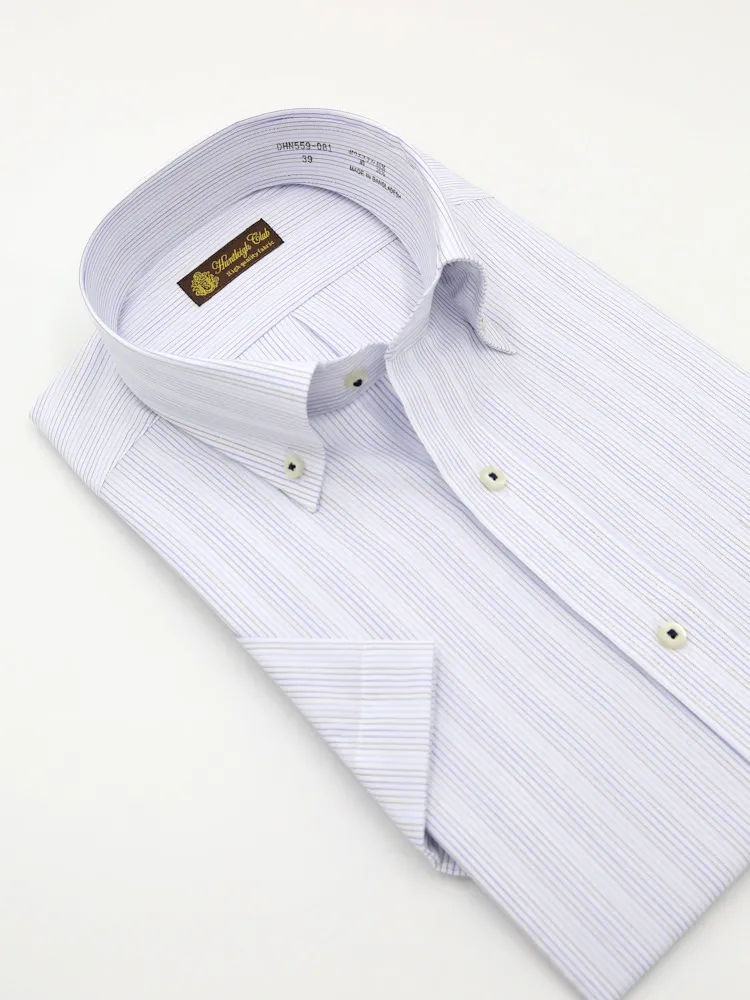 【形態安定】 半袖ワイシャツ ボタンダウン ストライプ ハントレークラブ 春夏