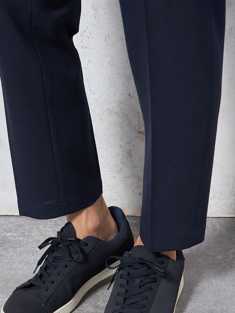 ノータックの腰回りと程よいテーパードのすっきりとしたシルエットに加え、ヒップポケットの位置にもこだわっており、後ろ姿も洗練された印象に。