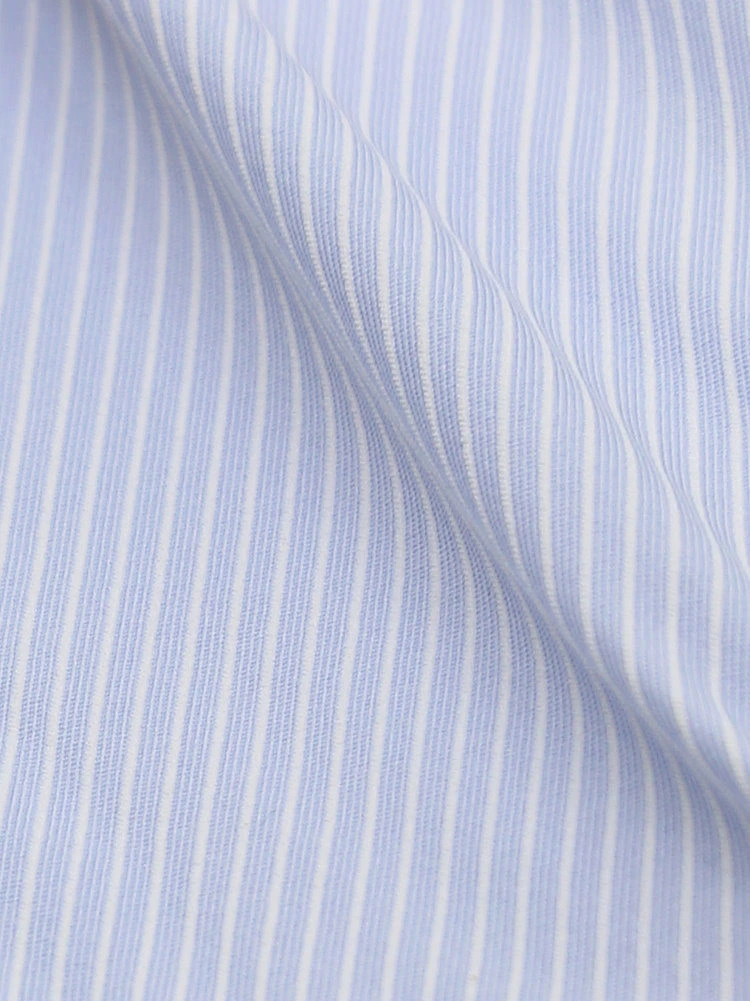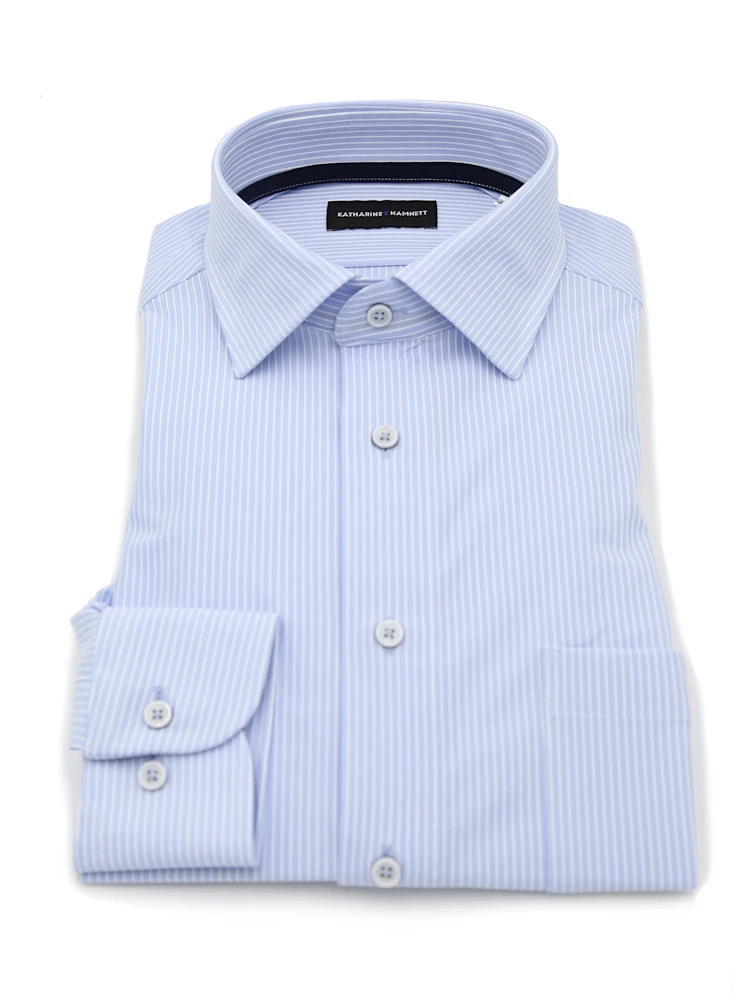 【KATHARINE E HAMNETT-キャサリン・イー・ハムネット-】長袖 ワイシャツ セミワイド 360°ストレッチ 吸水速乾 ストライプ 通年(ブルー)