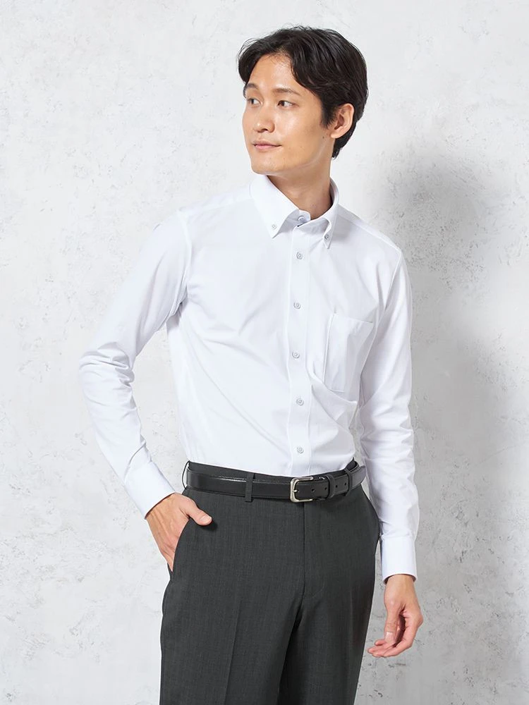 【完全ノーアイロン】長袖アイシャツレギュラーカラー白無地ワイシャツi-shirt通年【冠婚葬祭/リクルート使用可】