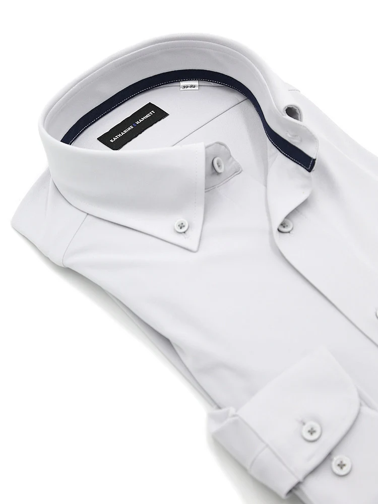 【KATHARINEEHAMNETT-キャサリン・イー・ハムネット-】長袖ワイシャツセミワイド360°ストレッチ吸水速乾無地通年