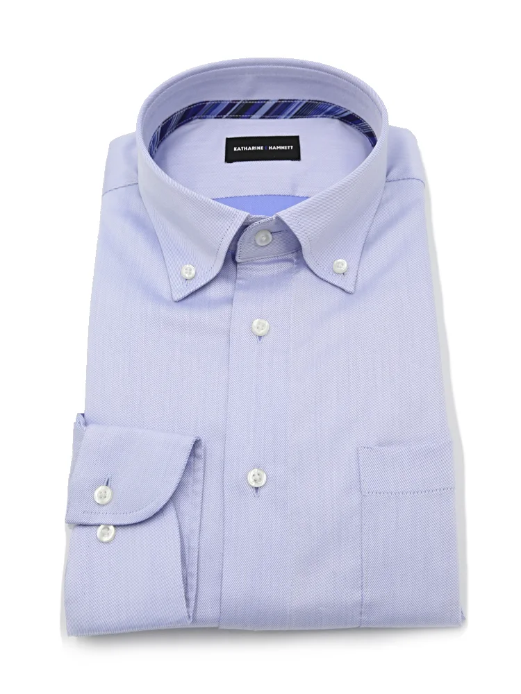 【KATHARINE E HAMNETT-キャサリン・イー・ハムネット-】長袖 ワイシャツ ボタンダウン サックスツイル柄 リサイクル素材使用 通年
