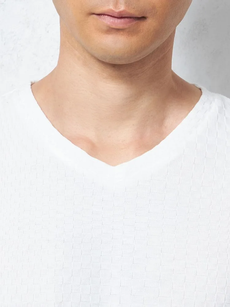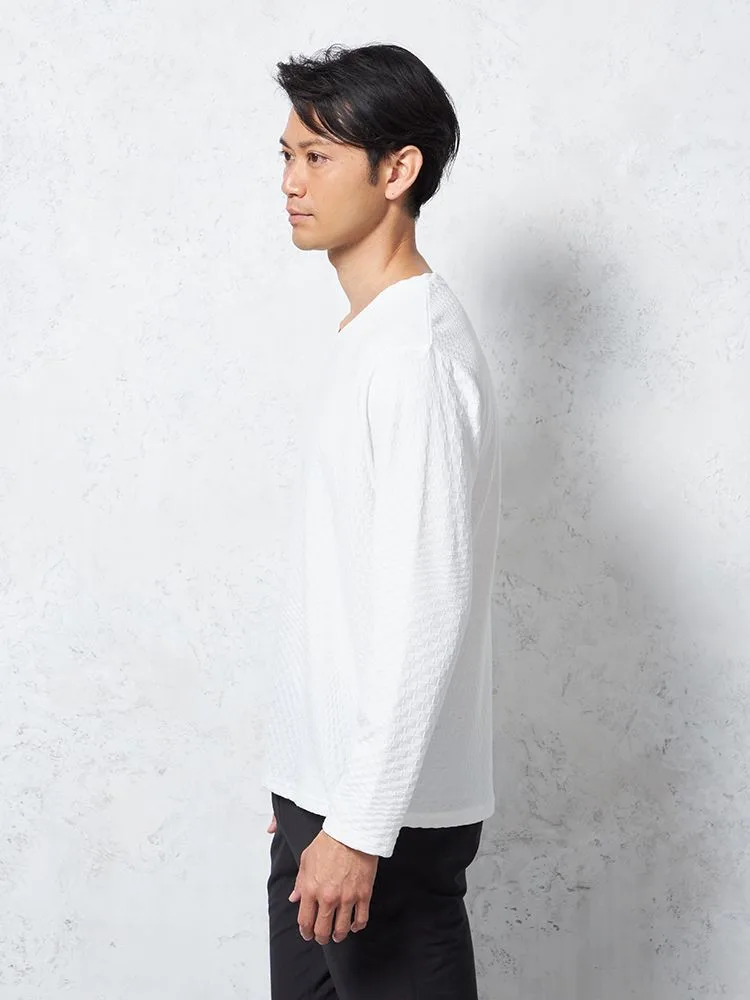 格子状の凹凸がある表情豊かな生地を使用したTシャツ。