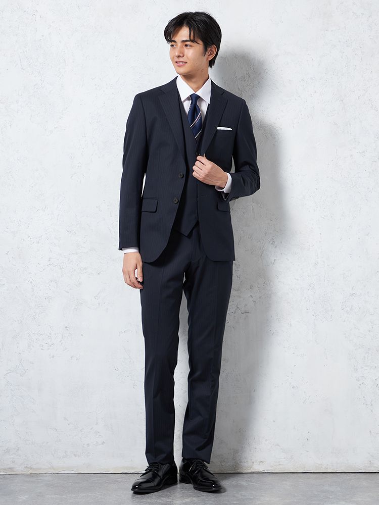 さまざまなシーンで重宝するシャドーストライプのスリーピーススーツ。