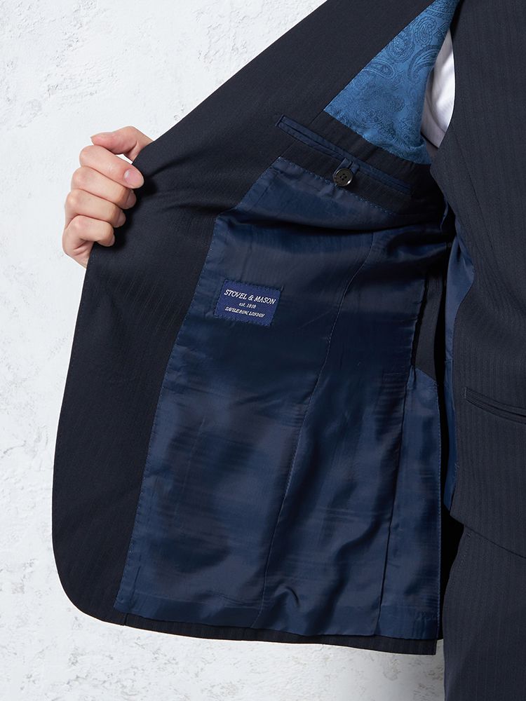 【ウール混】スリーピーススーツ 2つボタン キュプラ裏地 シャドウストライプ S&M BLUE LABEL