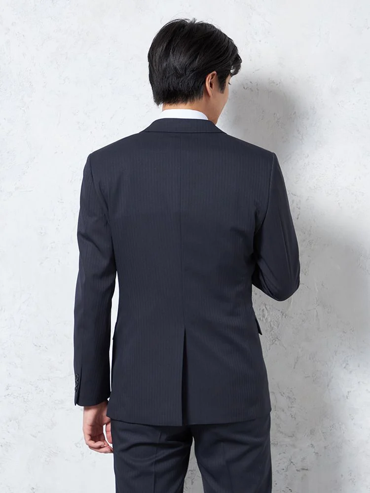 【即納】【WEB限定】スーツ2つボタンネイビーシャドウストライプ上下ウォッシャブル3シーズン対応