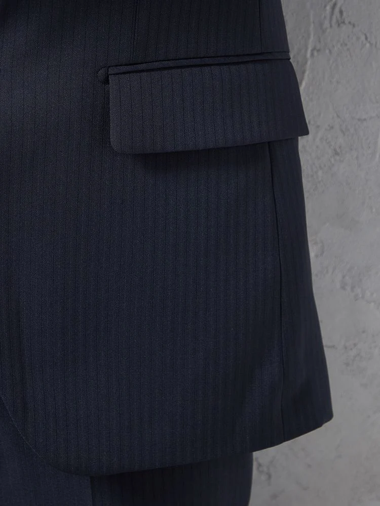 切り込みが1本のセンターベントデザインです。細身でスッキリとしたシルエットが特徴で、快適な着心地を提供します