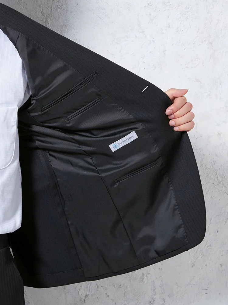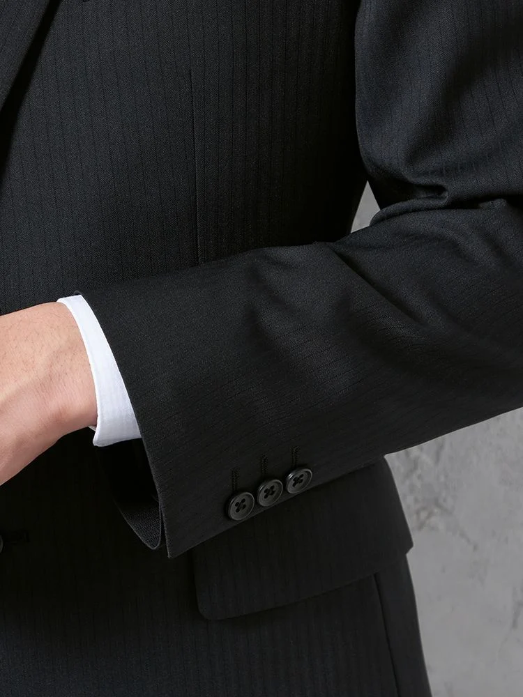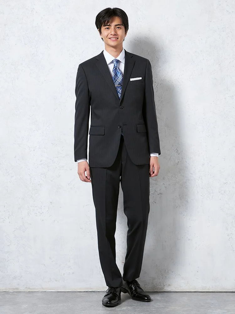 【即納】【WEB限定】スーツ2つボタンブラックシャドウストライプ上下ウォッシャブル3シーズン対応