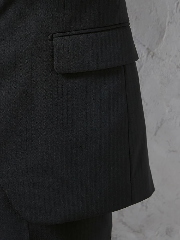 切り込みが1本のセンターベントデザインです。細身でスッキリとしたシルエットが特徴で、快適な着心地を提供します