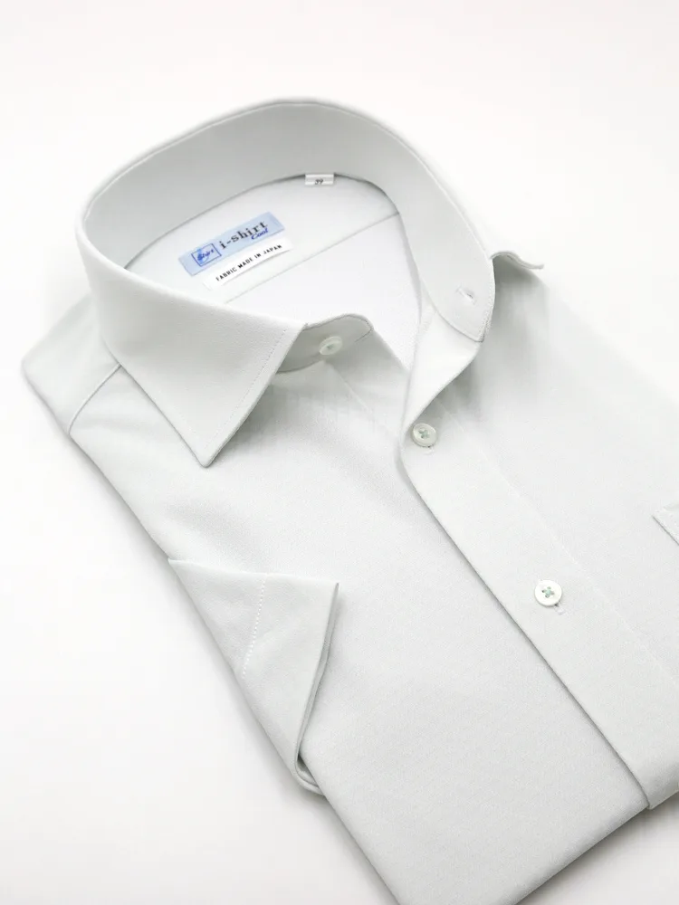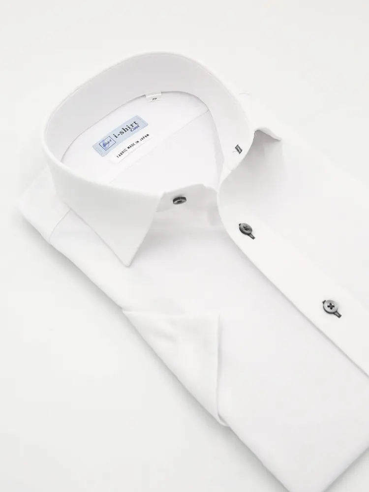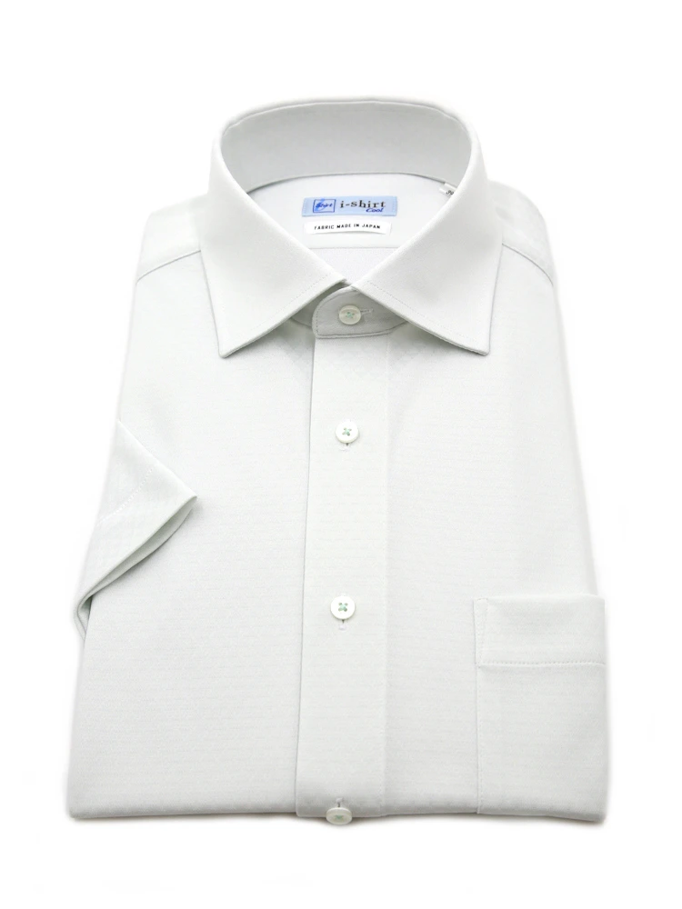 【完全ノーアイロン】半袖 アイシャツ セミワイド【バイオセンサークール生地使用】吸湿冷感 高通気 織柄無地 ワイシャツ i-shirt 春夏(ホワイト)