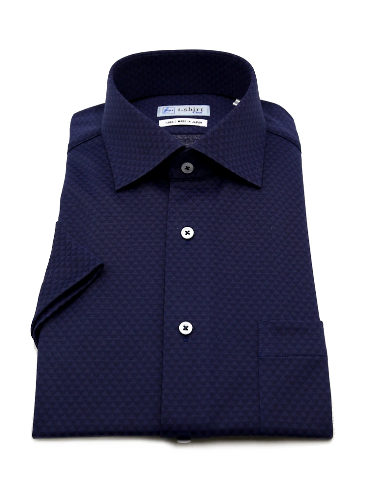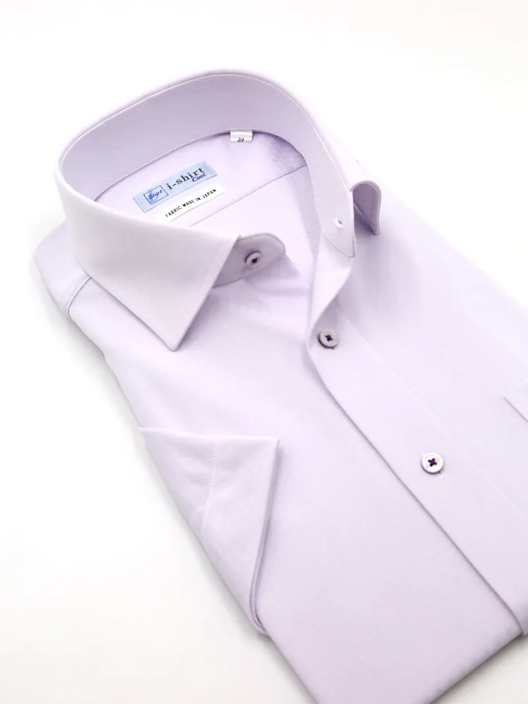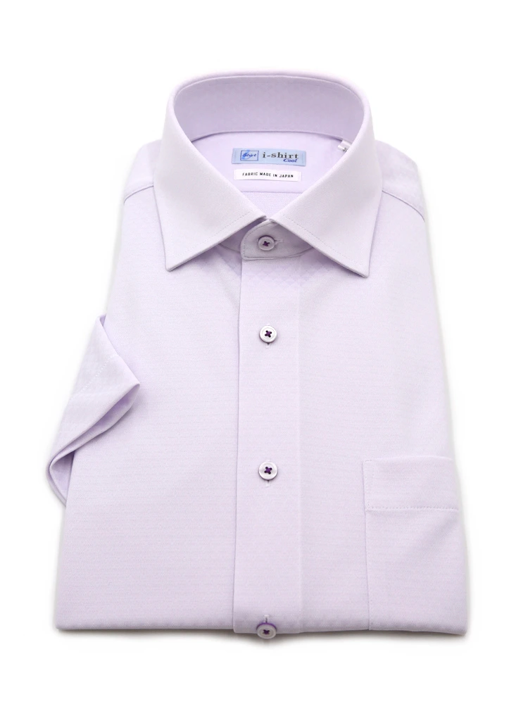 【完全ノーアイロン】半袖アイシャツセミワイド【バイオセンサークール生地使用】高通気冷感シャドウストライプ織柄無地ワイシャツi-shirt春夏