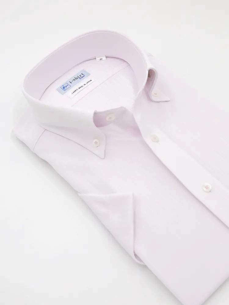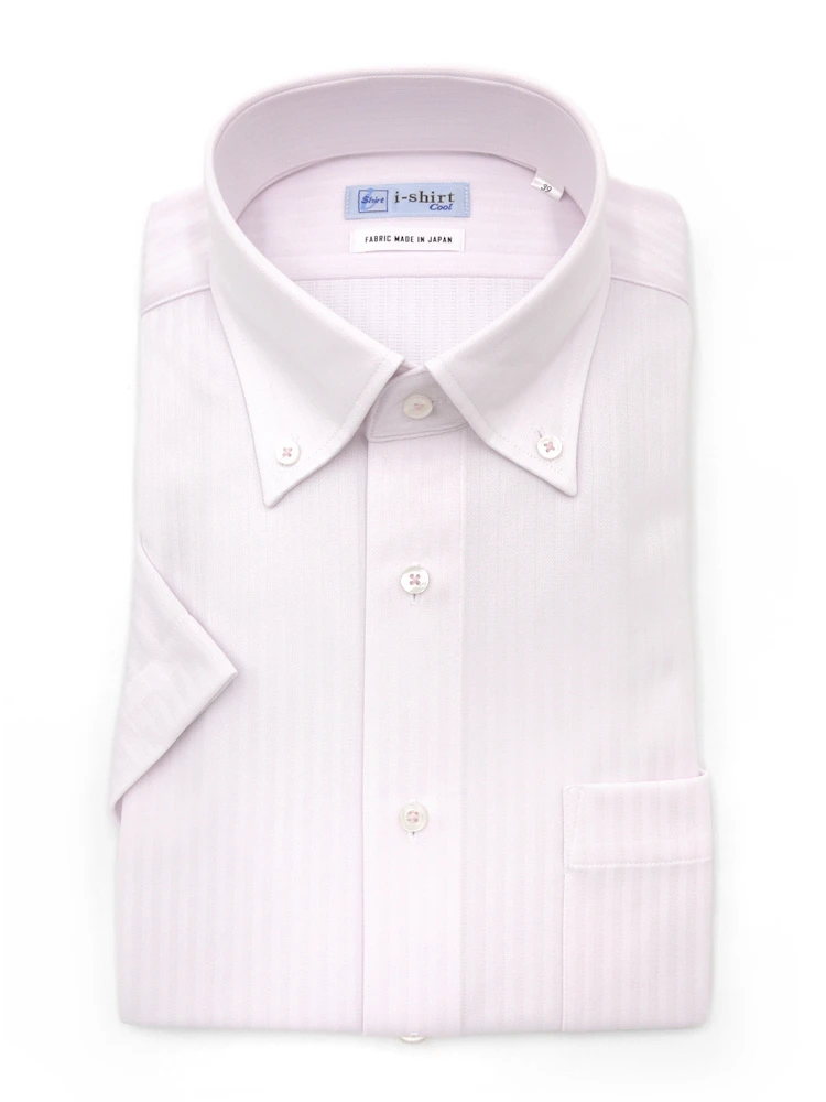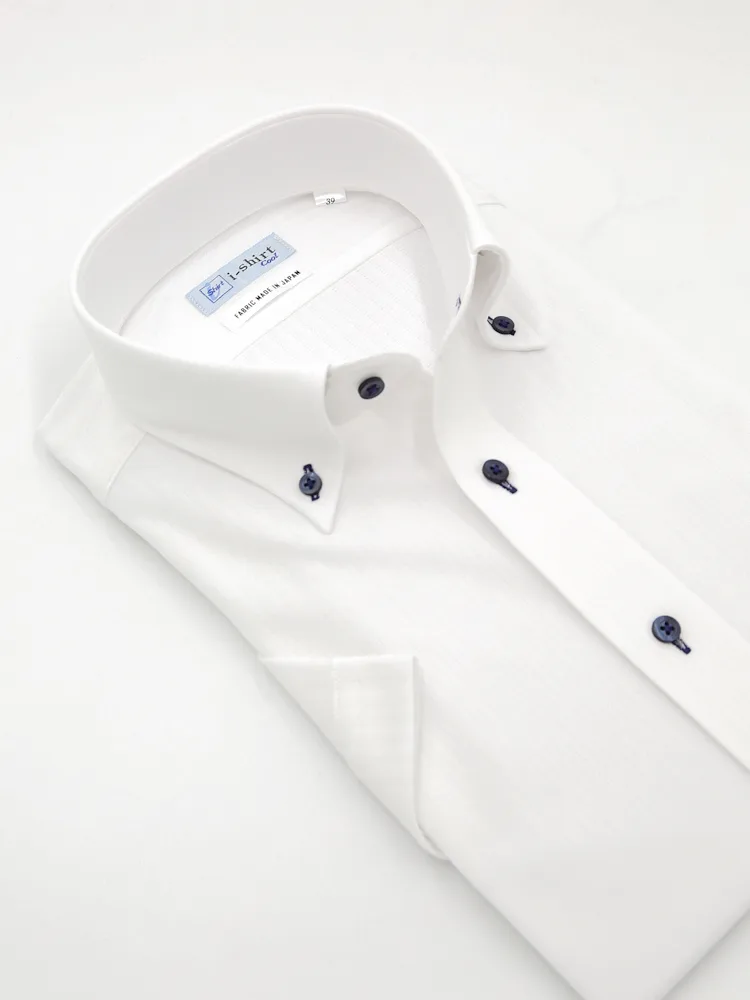 【完全ノーアイロン】半袖アイシャツボタンダウン【バイオセンサークール生地使用】高通気冷感織柄無地ワイシャツi-shirt春夏