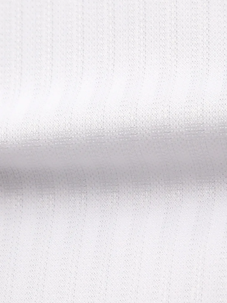 こだわりの日本製生地はソフトなポリエステルニットで、スポーツウェア等にも使われる高機能素材。体の動きに合わせて生地が伸び縮みする高いストレッチ性が特徴で、動作時の負荷が少なく着用ストレスも軽減します。