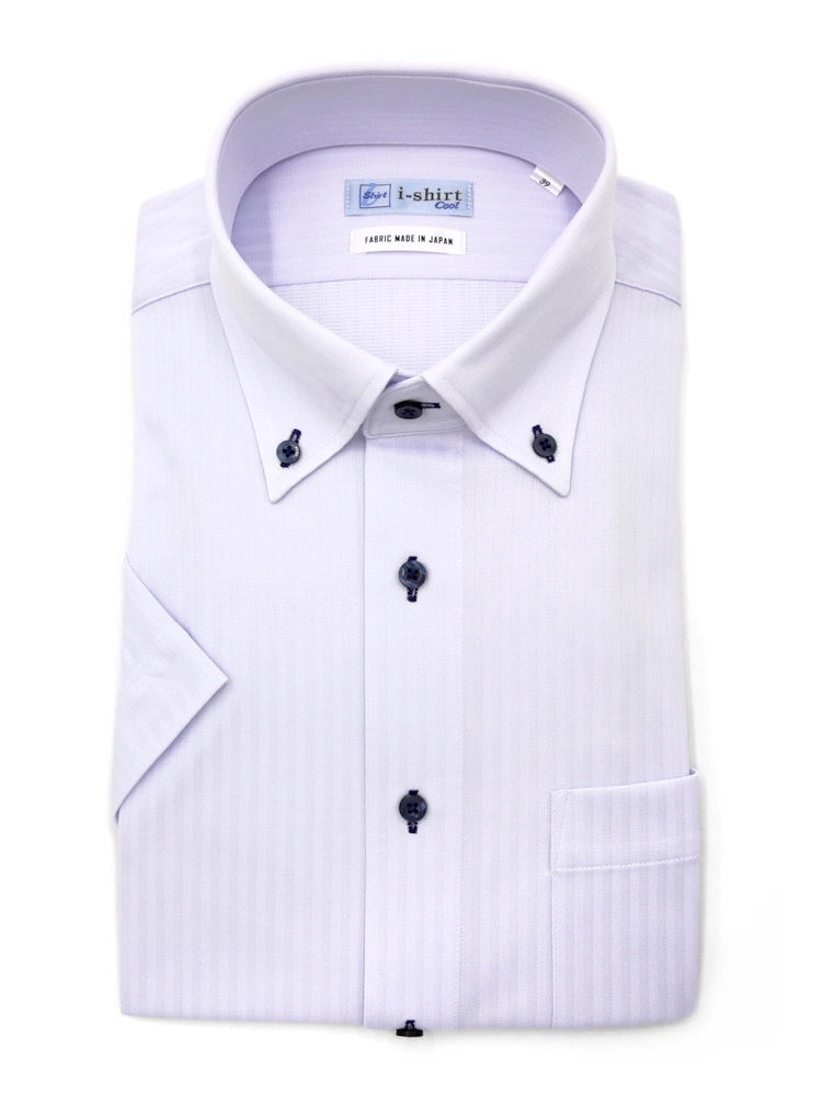 【完全ノーアイロン】半袖 アイシャツ ボタンダウン【バイオセンサークール生地使用】吸湿冷感 高通気 ストライプ ワイシャツ i-shirt 春夏(サックス)