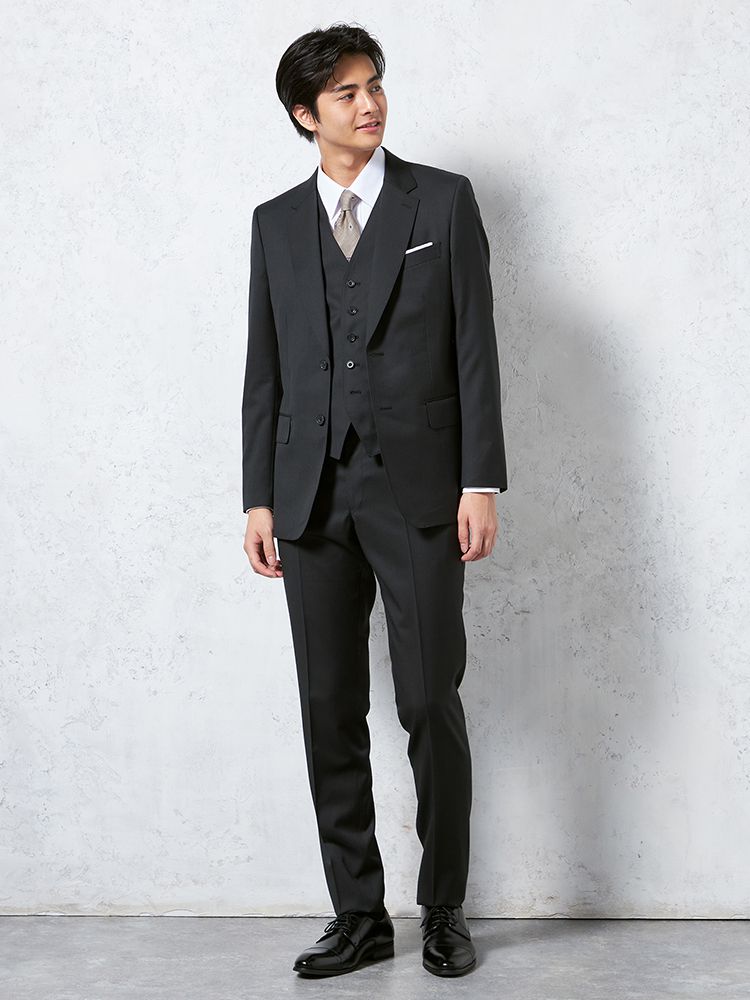 【ウール100%】スリーピーススーツ2つボタン【REDA社製生地】無地リッケンバッカー
