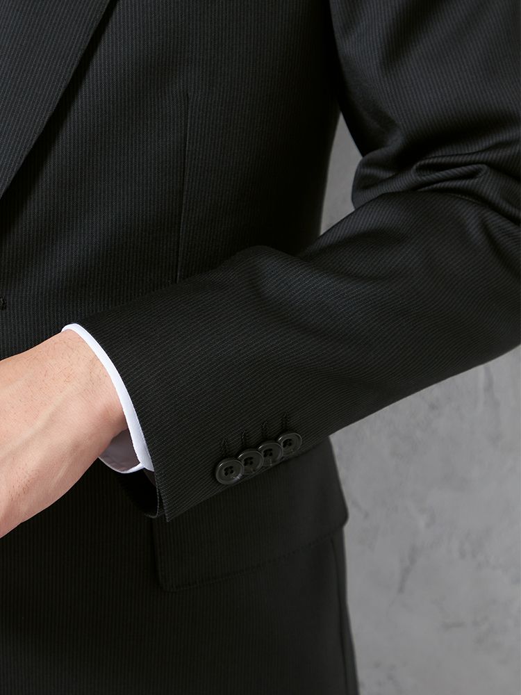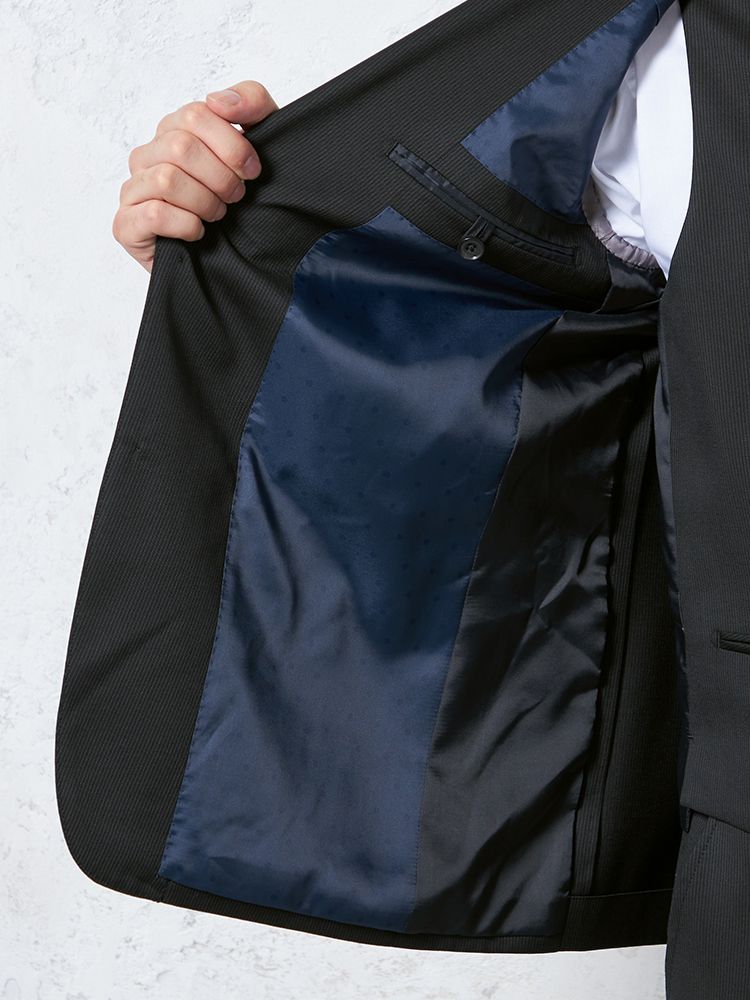 【即納】【WEB限定】スーツ2つボタンブラックシャドウストライプ上下ウォッシャブル3シーズン対応
