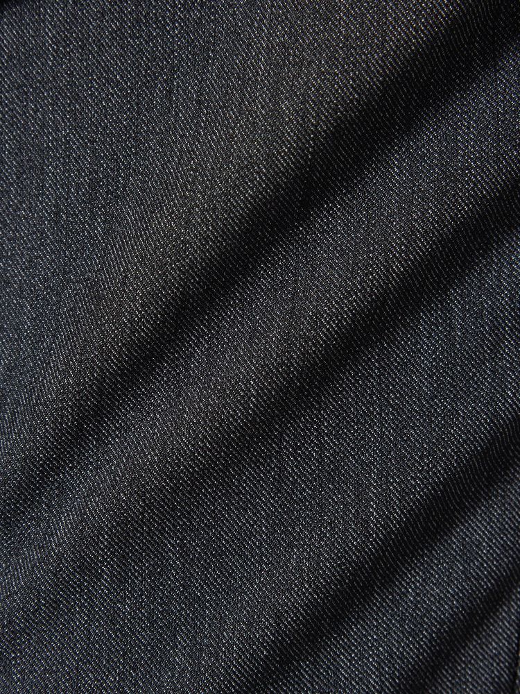 デニム生地のような程よいラフさのある表情に仕上げた【KATHARINE E HAMNETT-キャサリン・イー・ハムネット-】ブラックパンツ。