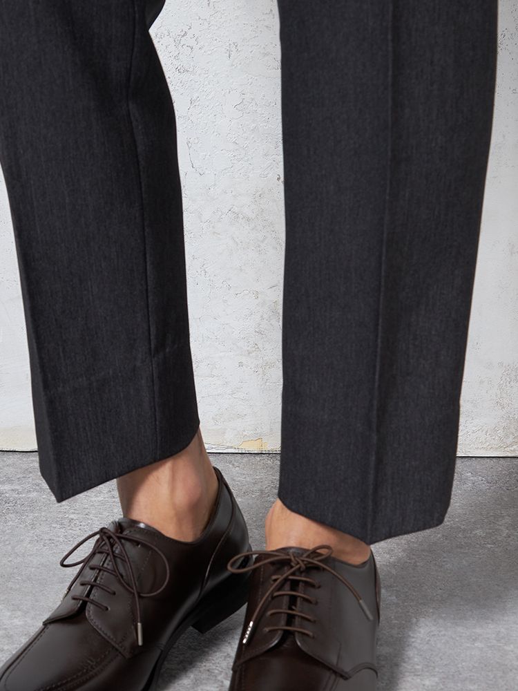 ノータックのすっきりとしたシルエット。ウエストの両サイドにはゴムが入り、フィット感も快適です。