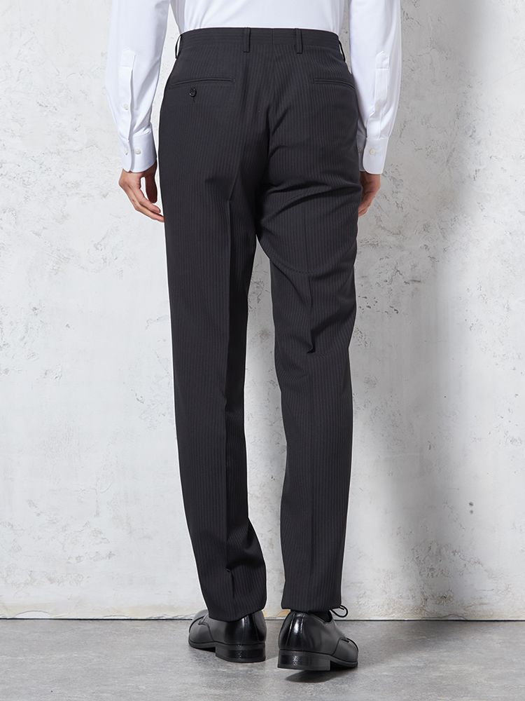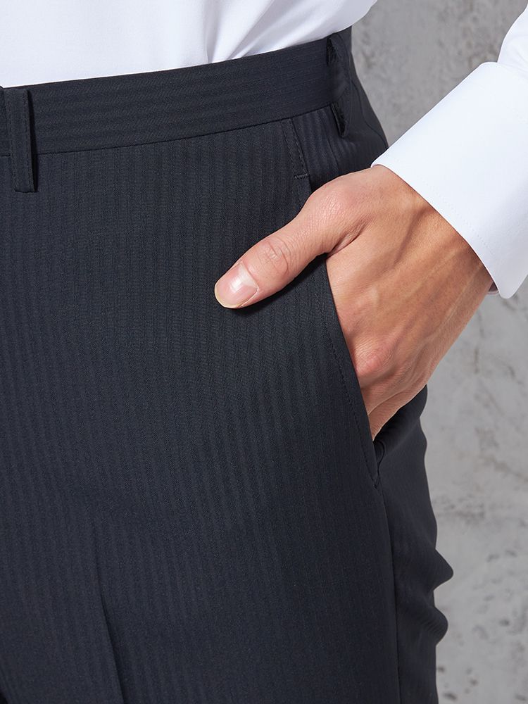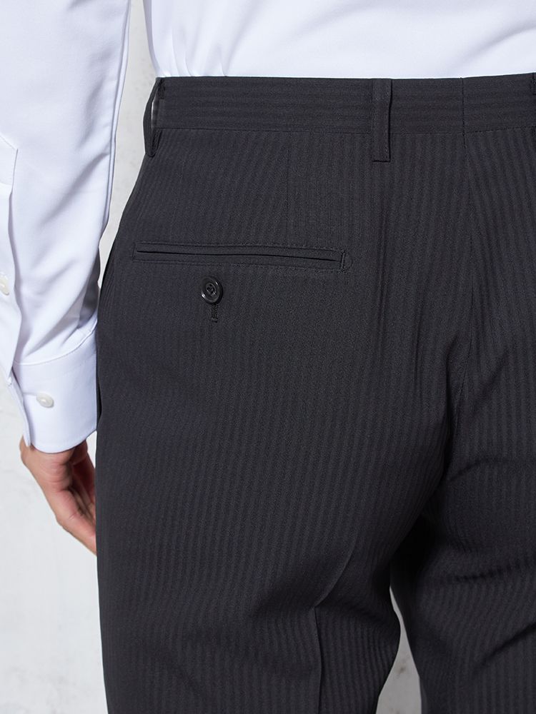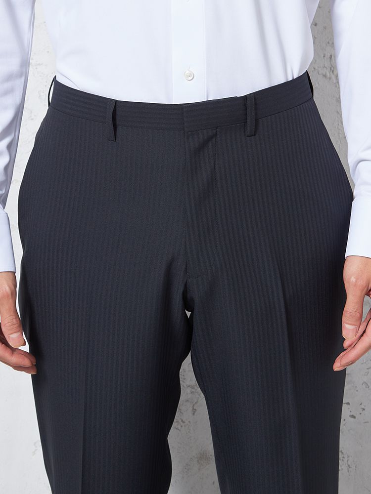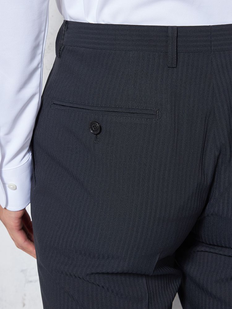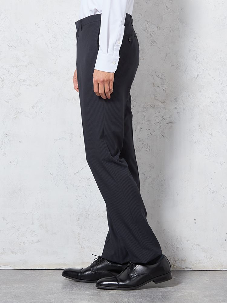 【4wayストレッチ】パンツ ノータック ドライパンツ 膝あて清涼裏地 シャドウストライプ nero 春夏【スリムデザイン】(ブラック)