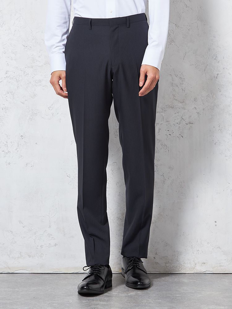 【ウォッシャブル】パンツ ノータック ツイル柄 ピンヘッド nero【スリムデザイン】