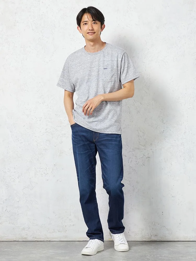 年齢問わず着用可能なレギュラーフィット。脇スリットや胸ポケットに“EDWIN”刺繍を施しています。