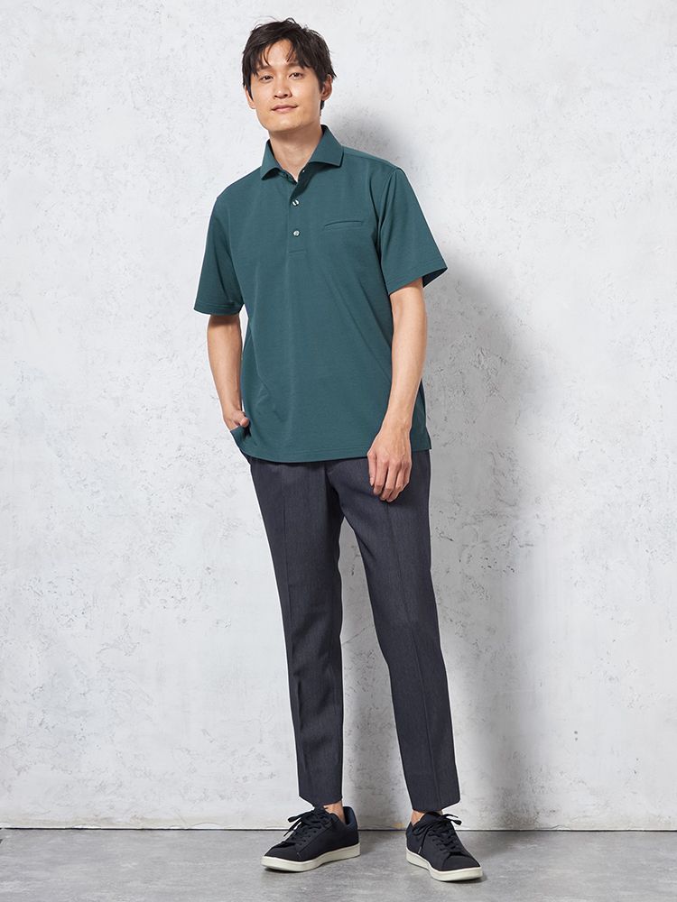 【吸汗速乾】半袖ポロシャツワイドカラービズポロ織柄無地カジュアルインナーTOKYORUN春夏