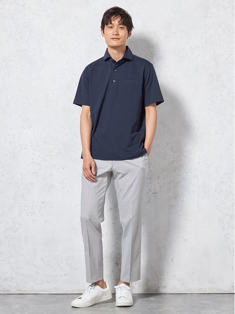 汗ジミ防止加工が施されており、汗をかいても気になりません。清潔感を保ちながら長時間着用できます。