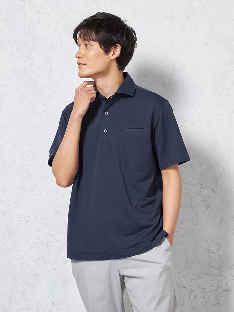 【KATHARINE E HAMNETT-キャサリン・イー・ハムネット-】半袖 ポロシャツ ビズポロ セミワイド 無地 春夏(ネイビー)