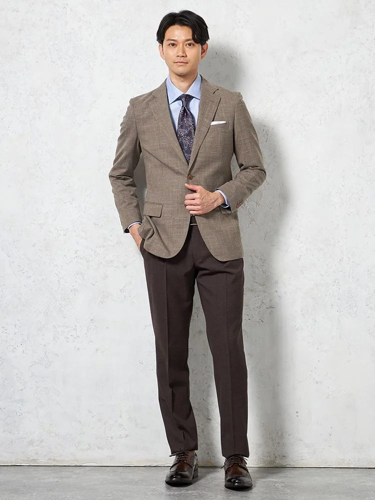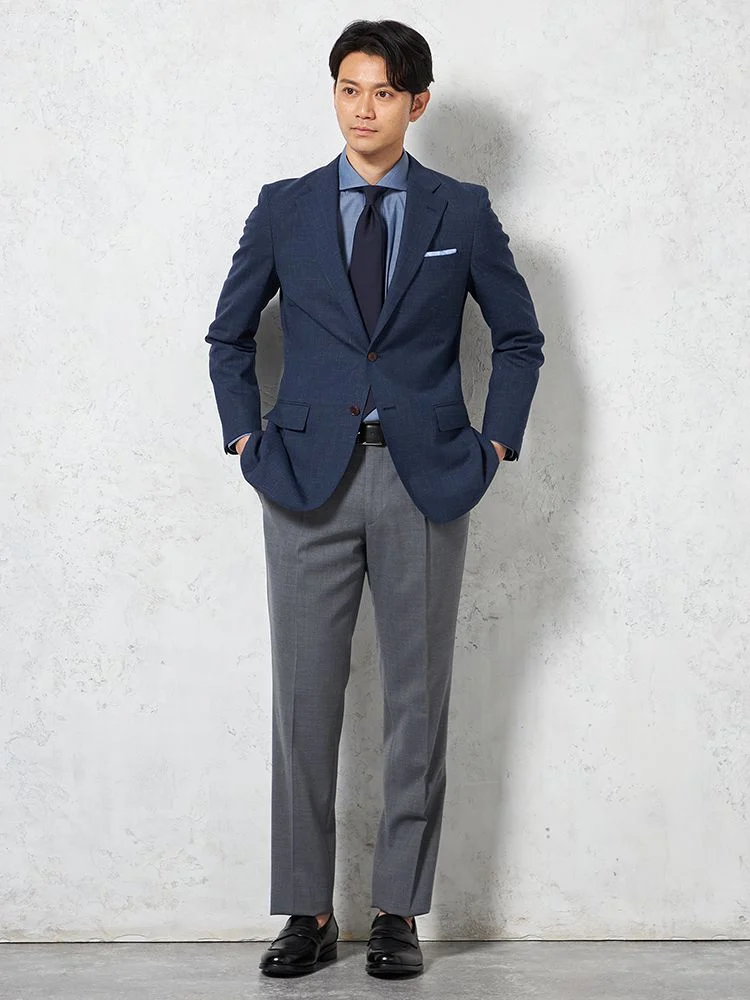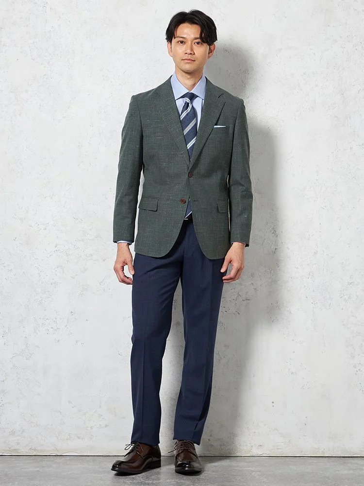 2つボタンのデザインで、クラシックなスタイルを演出。落ち着きと品のあるアイテムです。