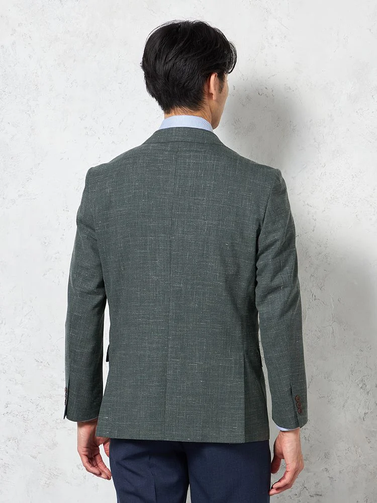 【軽量】ジャケット 2つボタン リネン ストレッチ 吸水速乾裏地 無地 リッケンバッカーブラック 春夏(ベージュ)