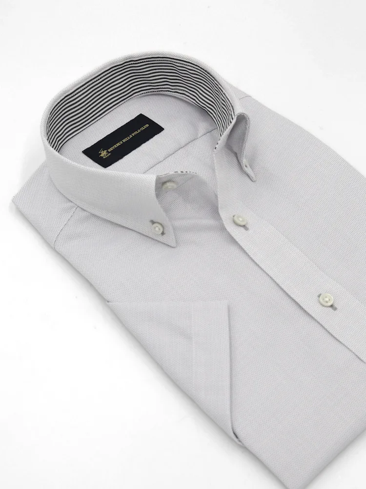【形態安定】半袖ワイシャツ ボタンダウン 別布 グレードビー 織柄無地 ビバリーヒルズポロクラブ 春夏