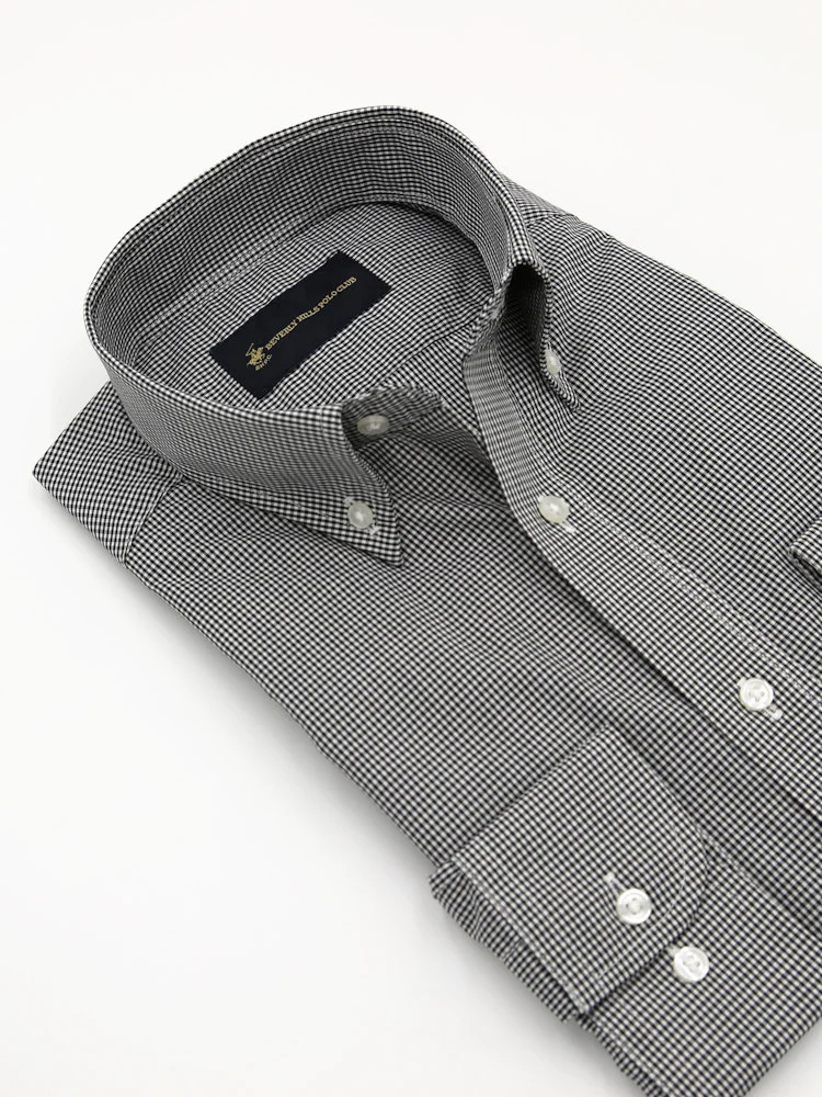 【形態安定】長袖ワイシャツ ボタンダウン ギンガムチェック ビバリーヒルズポロクラブ 通年