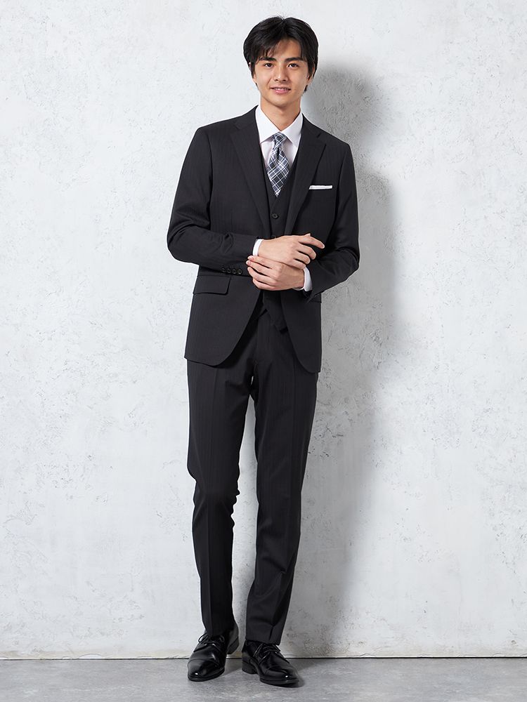 【WEB限定】褒められスーツセット入社式入学式おすすめ(ブラックスーツ・ワイシャツ・ネクタイ)
